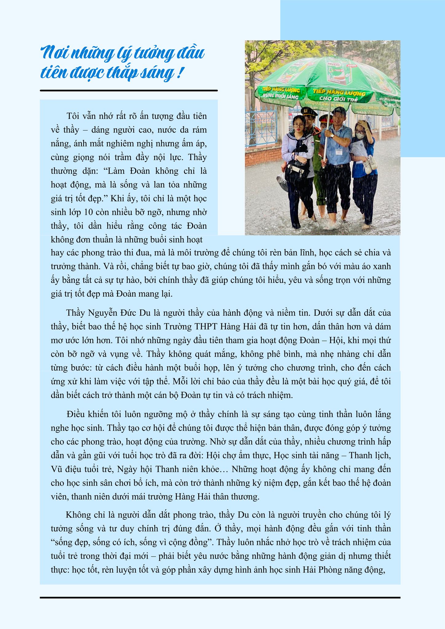 Bài viết không chỉ chạm đến trái tim của Ban Giám khảo mà còn gợi lên những ký ức đẹp đẽ về tình thầy trò nơi mái trường THPT Hàng Hải.