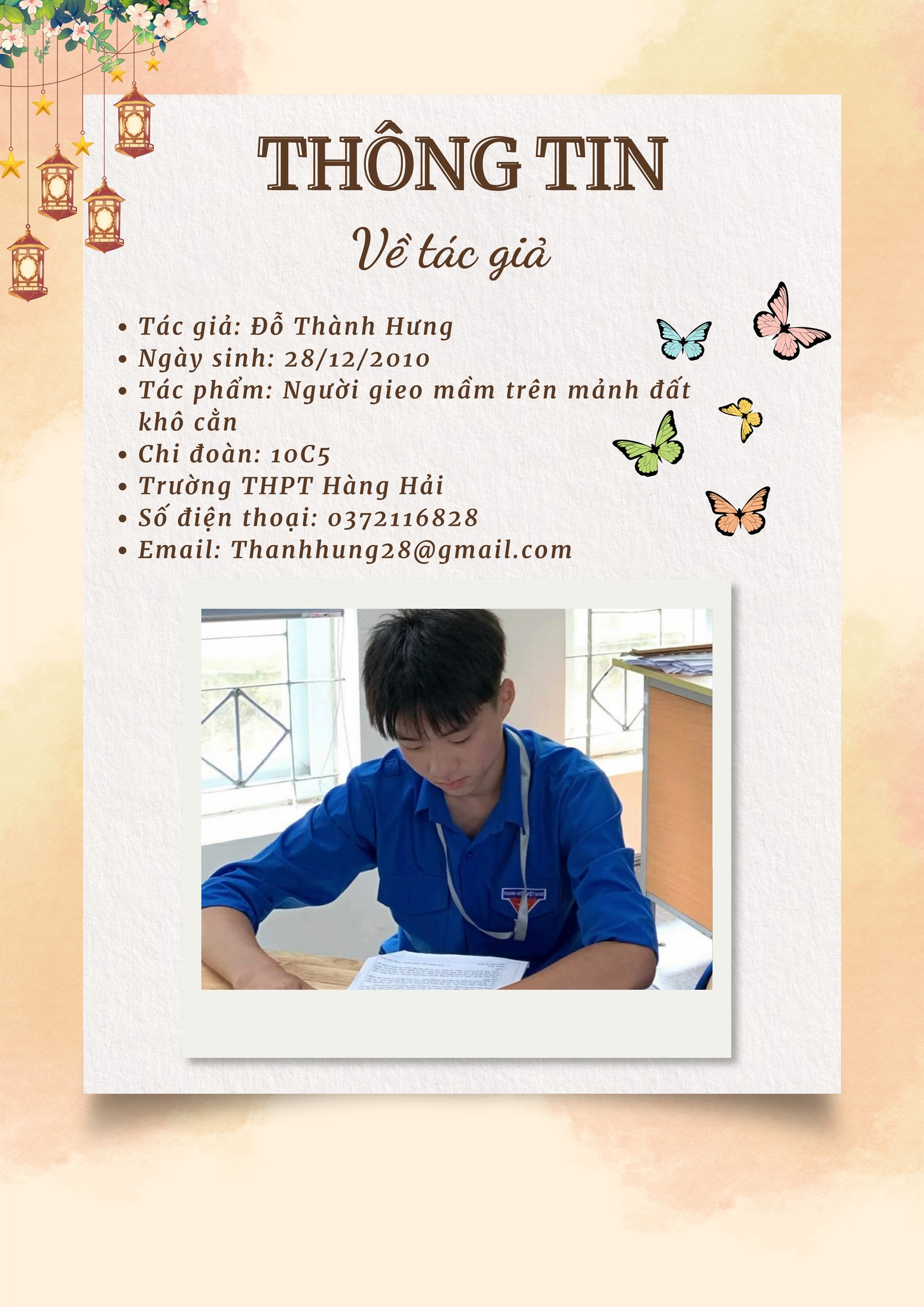 🎉 Xin chúc mừng em Đỗ Thành Hưng – lớp 10C5 với bài viết đầy cảm xúc “Người gieo mầm trên mảnh đất khô cằn” viết về cô giáo chủ nhiệm Bùi Thu Hương.