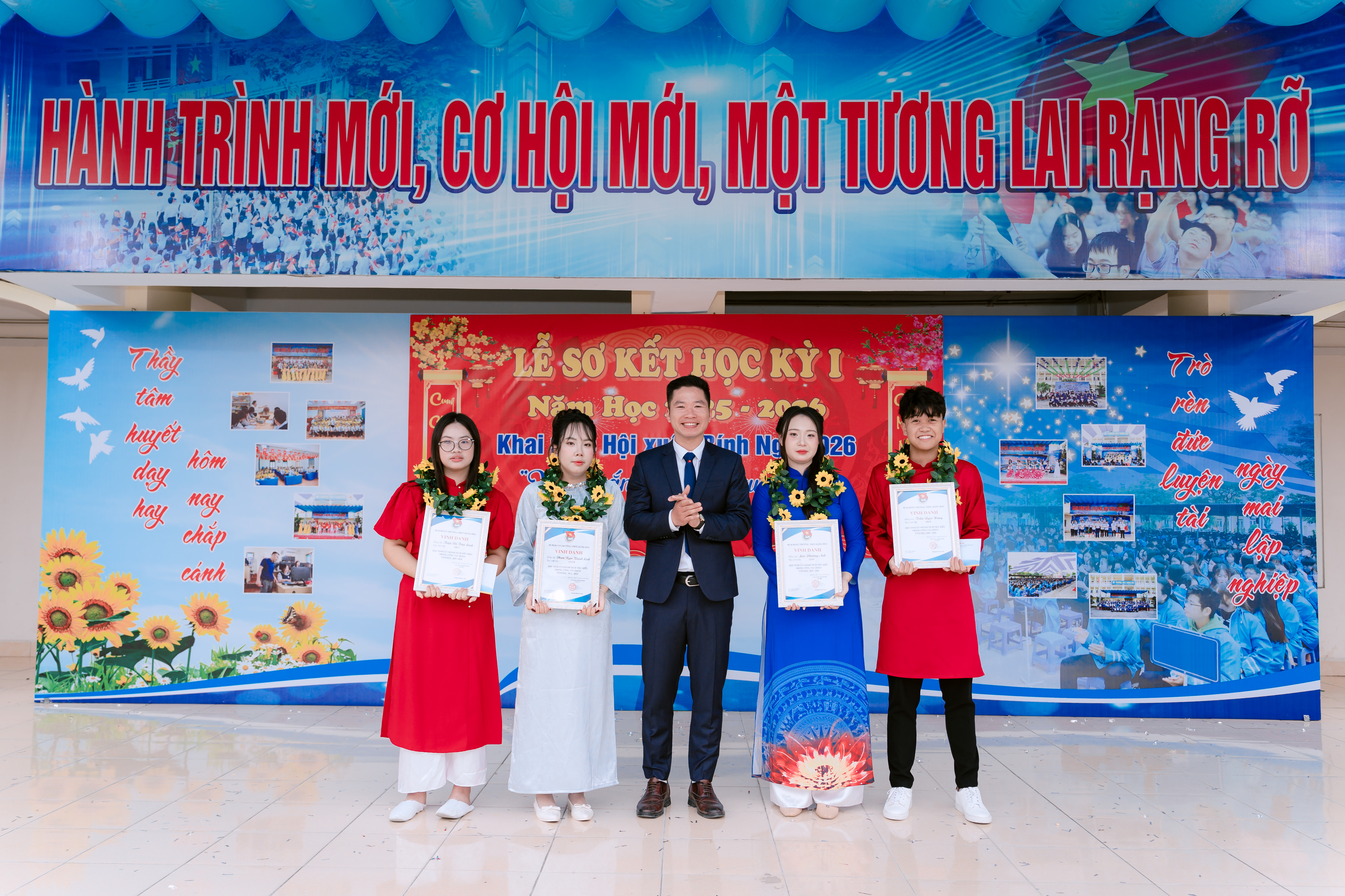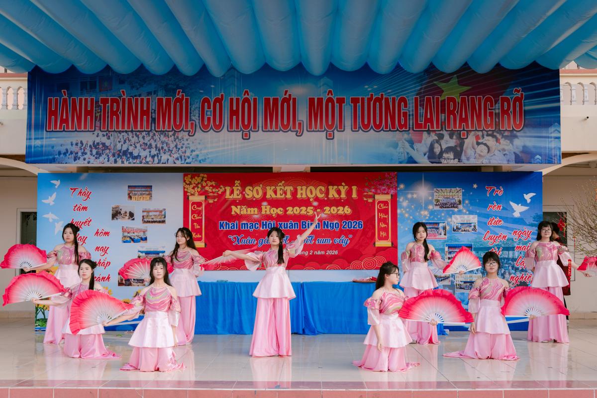 Buổi lễ mở đầu bằng các tiết mục văn nghệ chào mừng rộn ràng, tươi mới, mang theo sắc xuân và tinh thần trẻ trung của tuổi học trò.